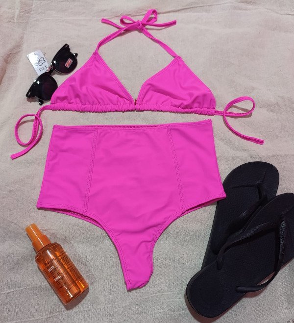 Corpiño de bikini y bombacha tiro alto terminada en colales