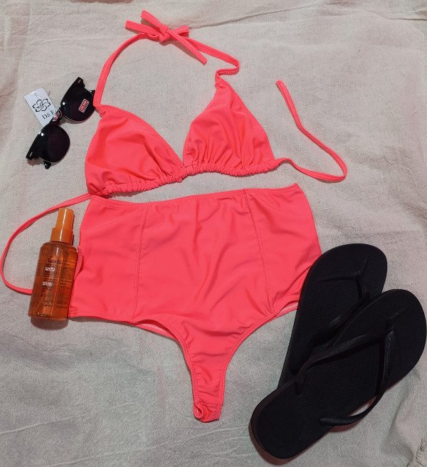 Corpiño de bikini y bombacha tiro alto terminada en colales