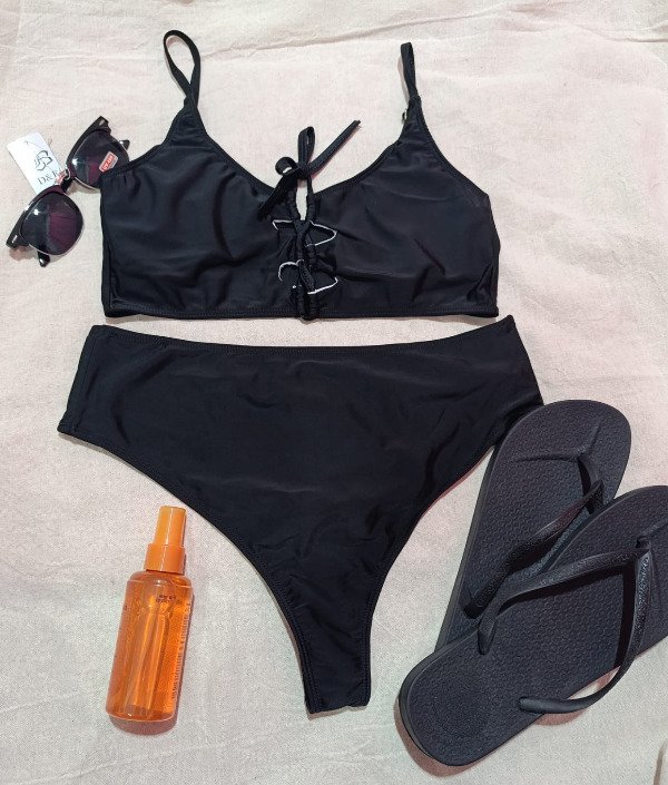 Corpiño de bikini con taza desmontable y bombacha tiro alto terminada en colales
